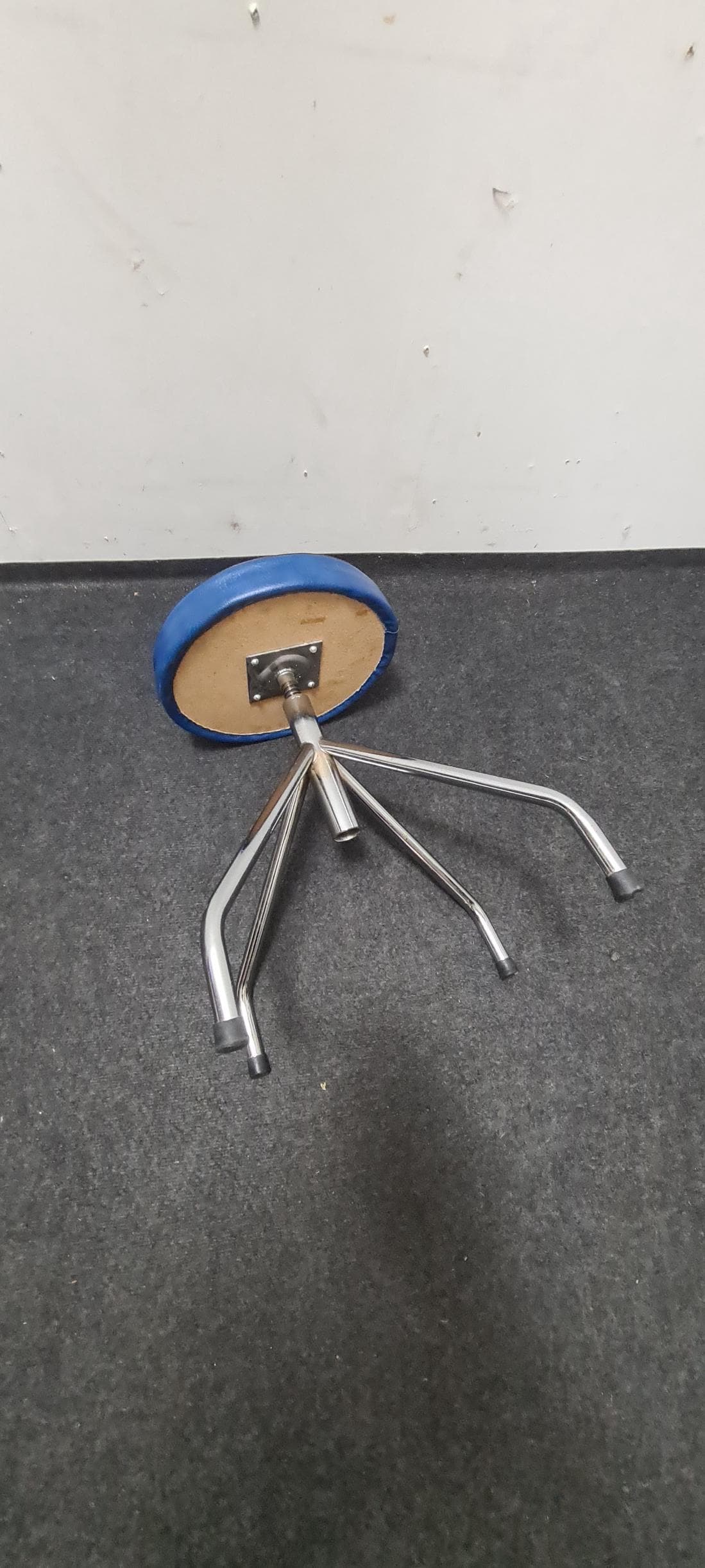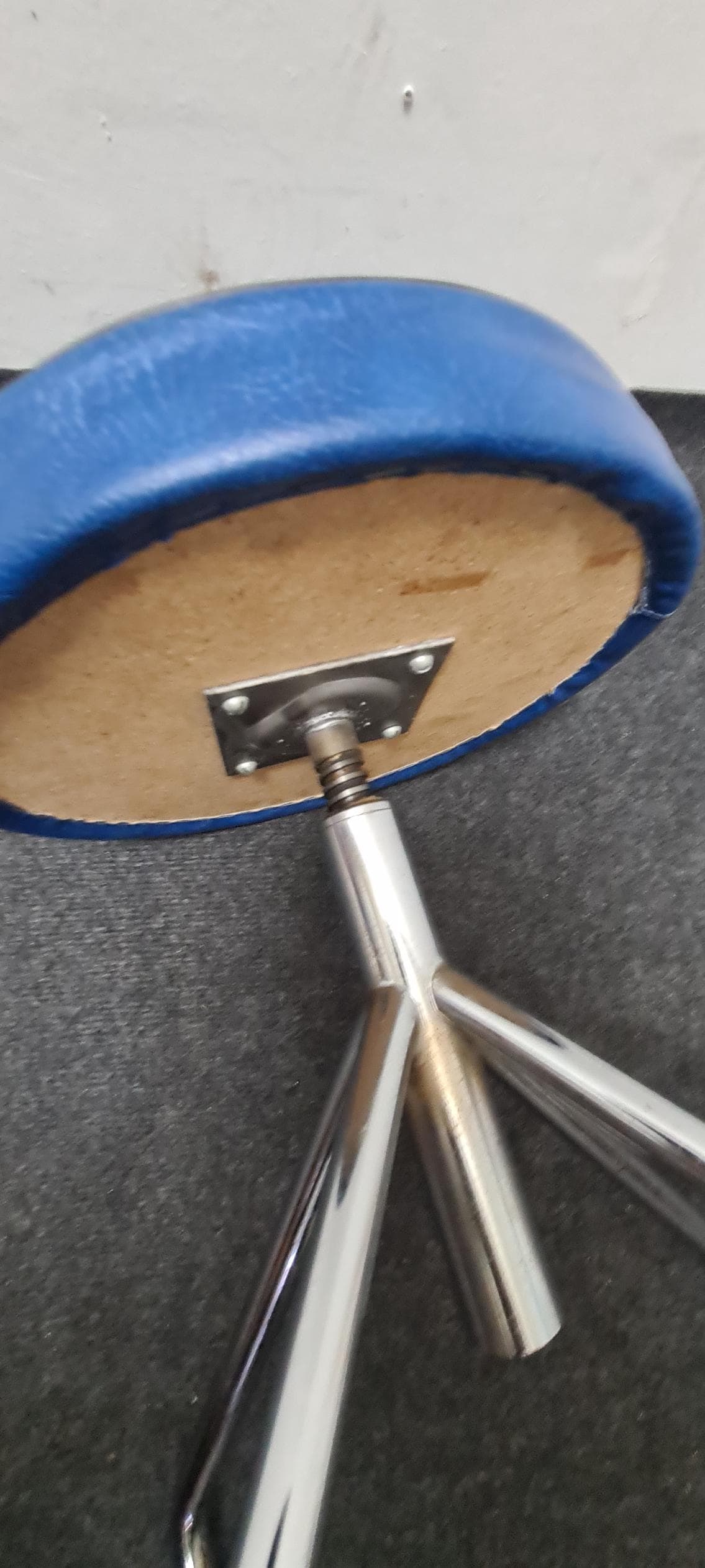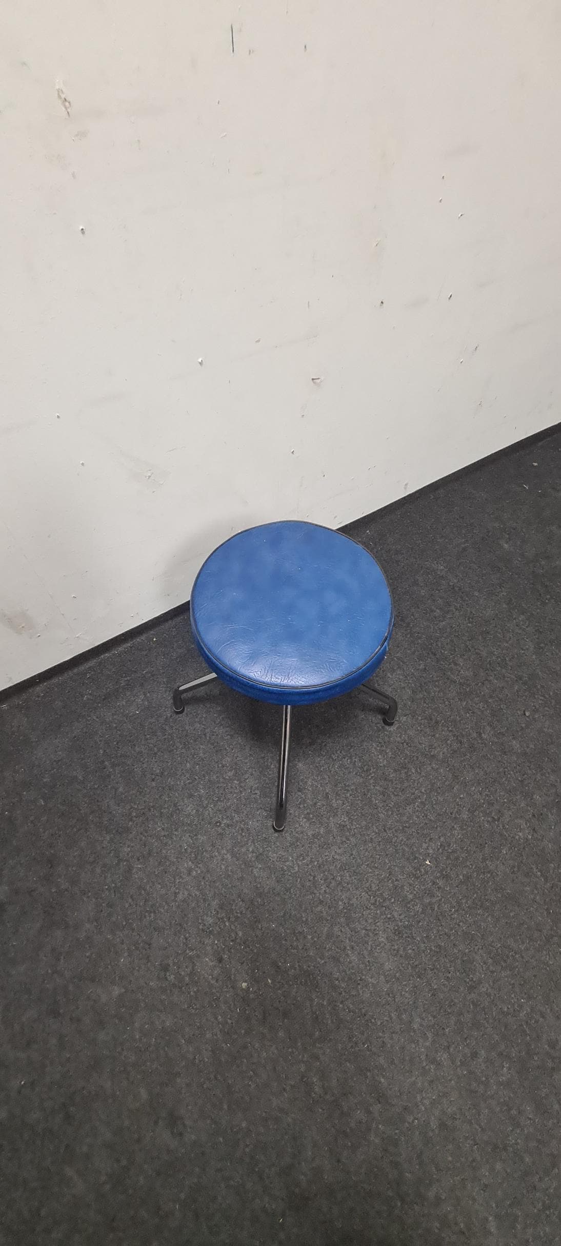 Well smart in blue skai ,vintage metal swivel stool.Condition is good, used but not abused.
