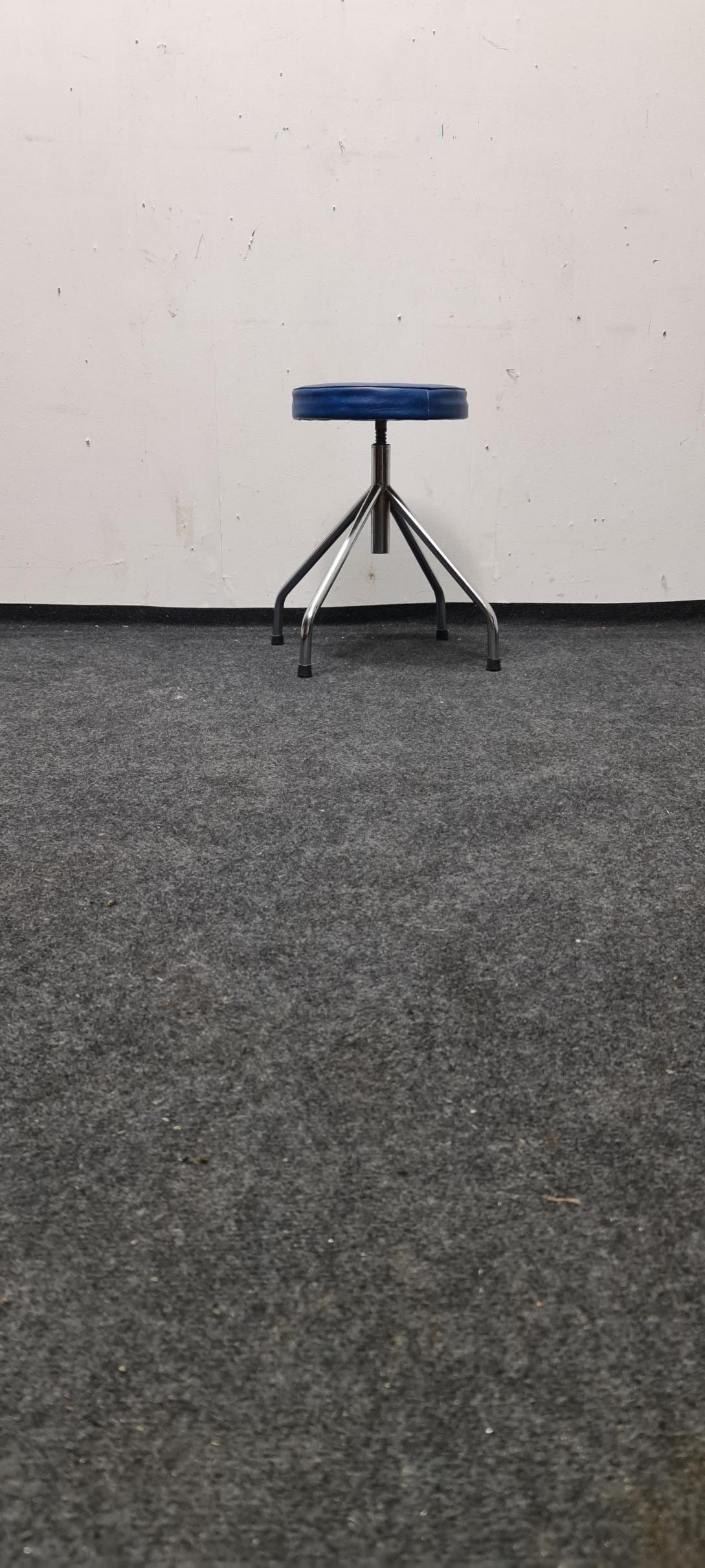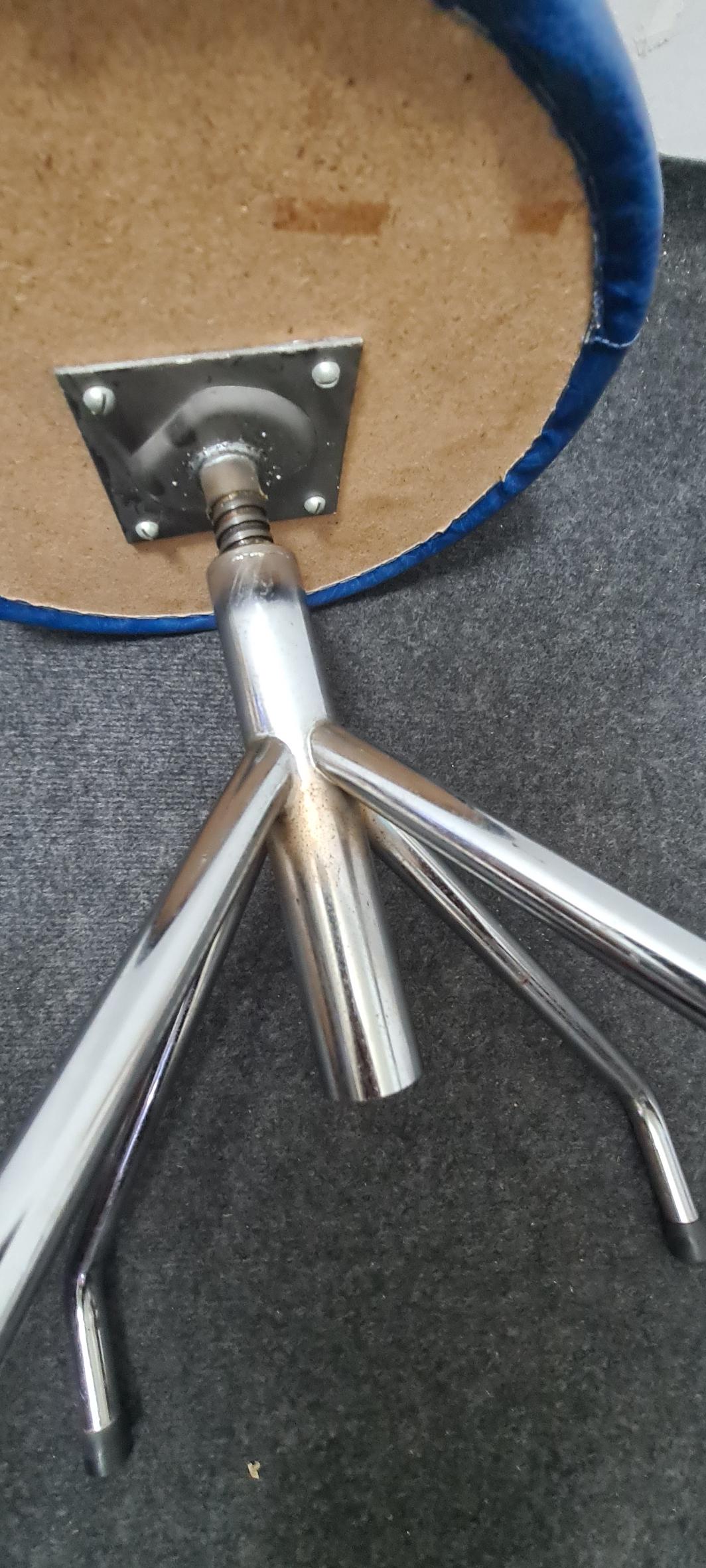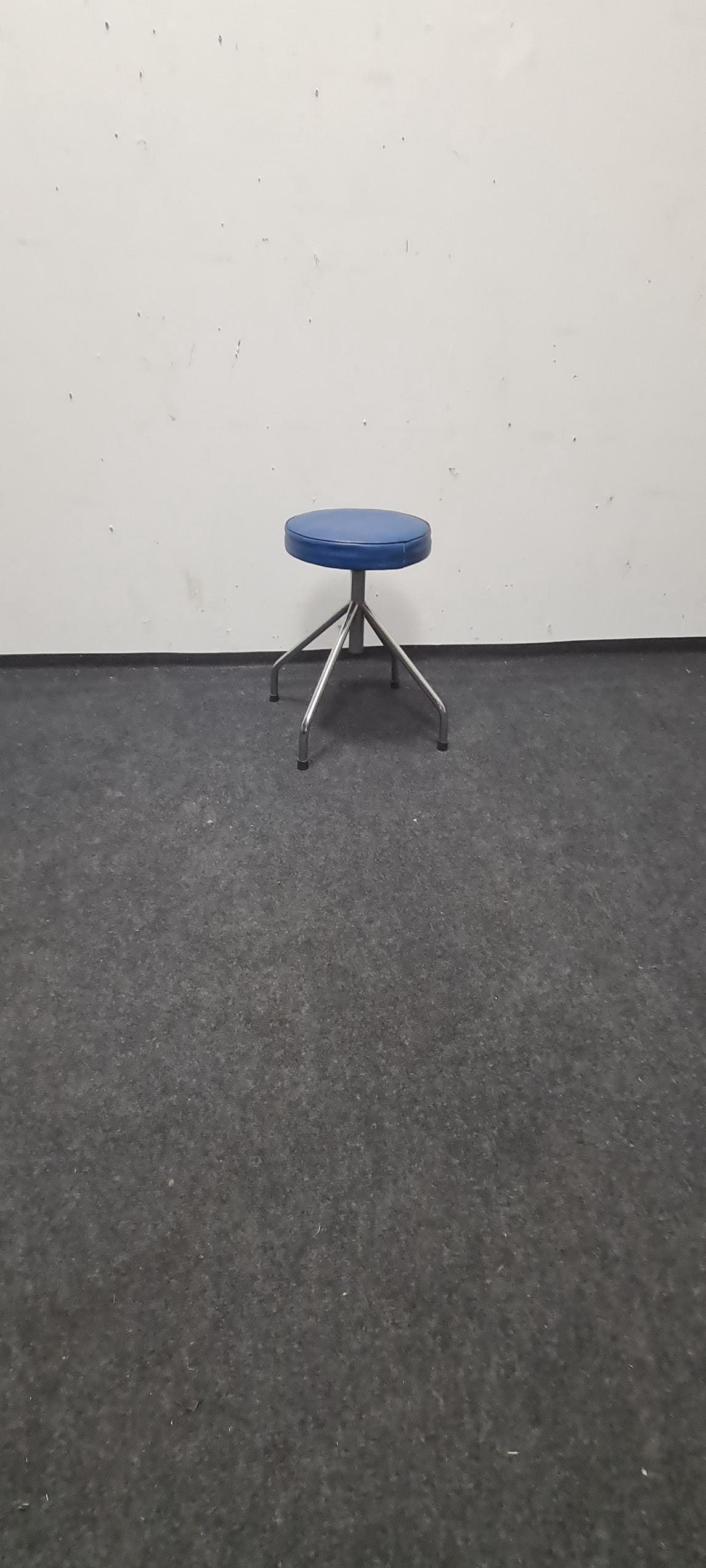Well smart in blue skai ,vintage metal swivel stool.Condition is good, used but not abused.