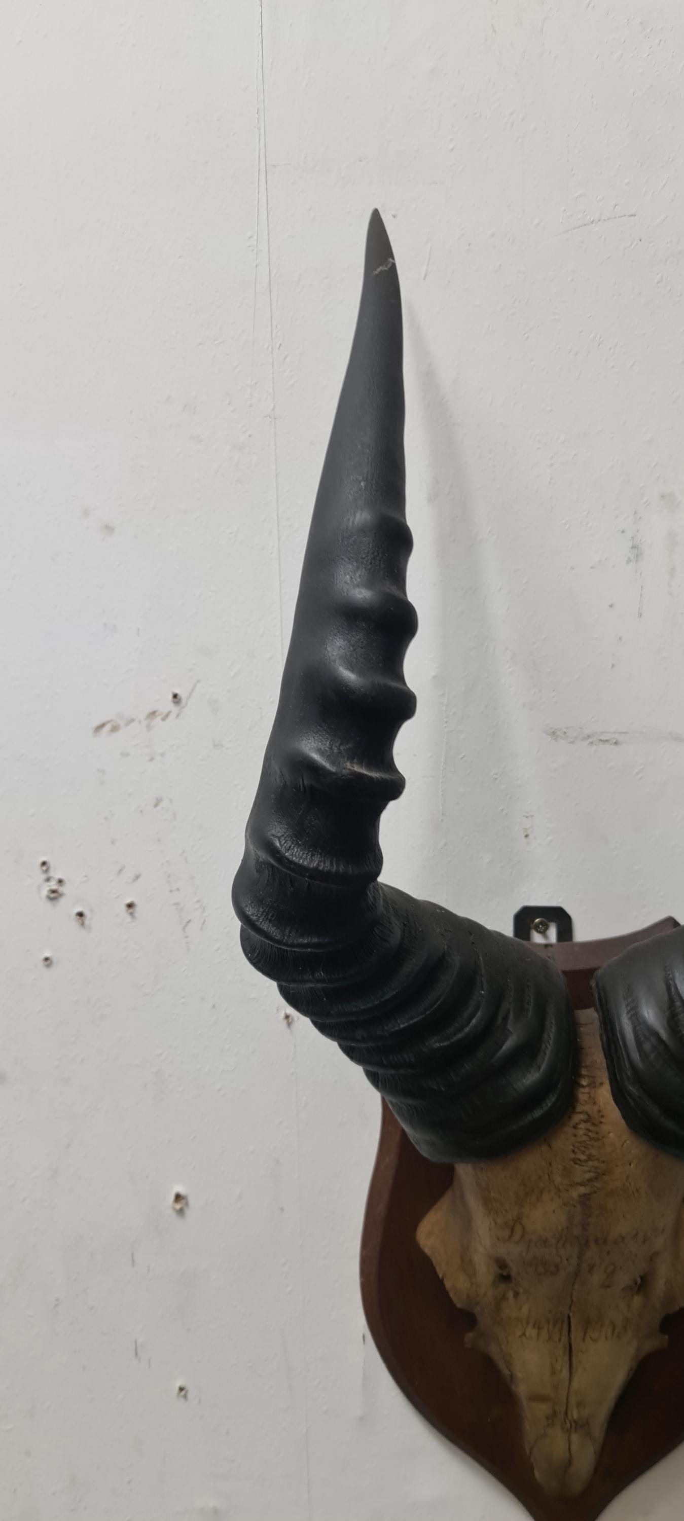 Vintage perhaps even antique spring bok antler . The date of shooting is 1908 if i read correctly. The condition is good, used, but not abused.