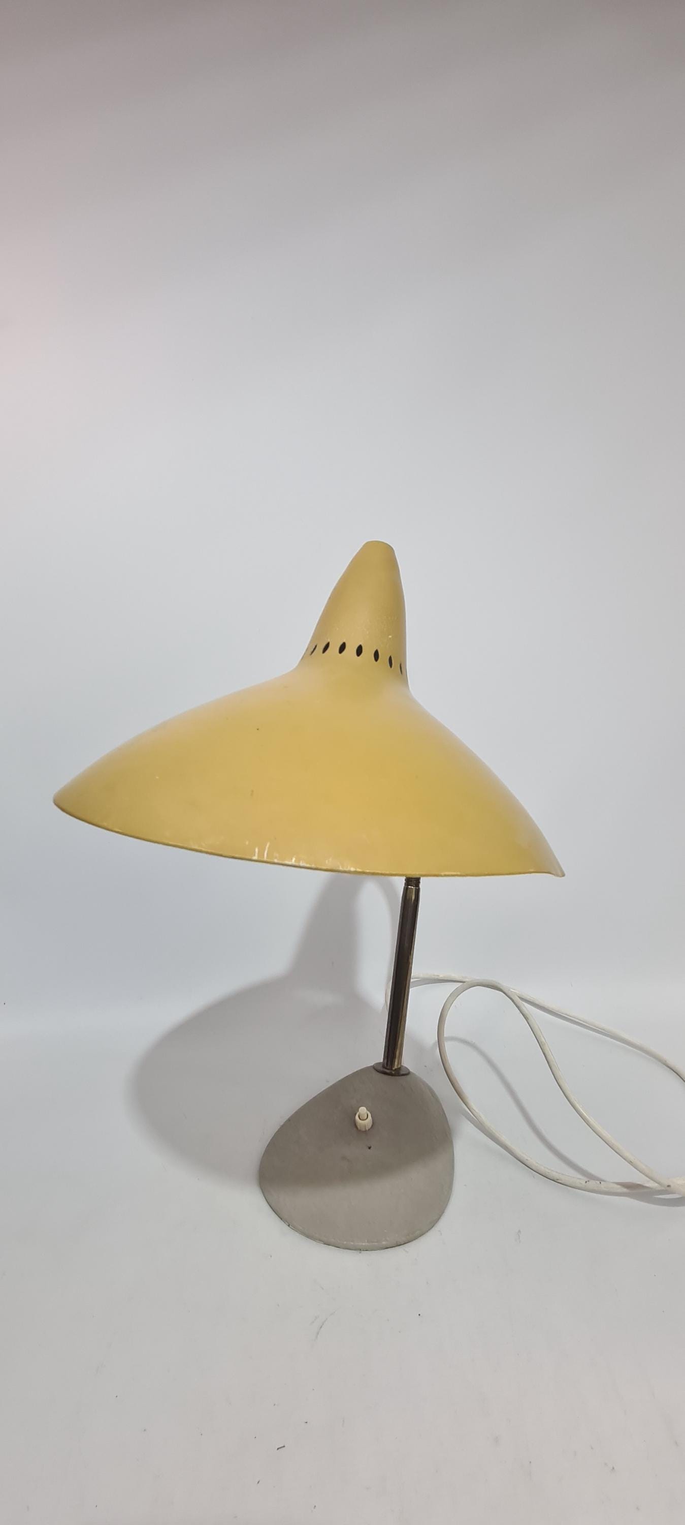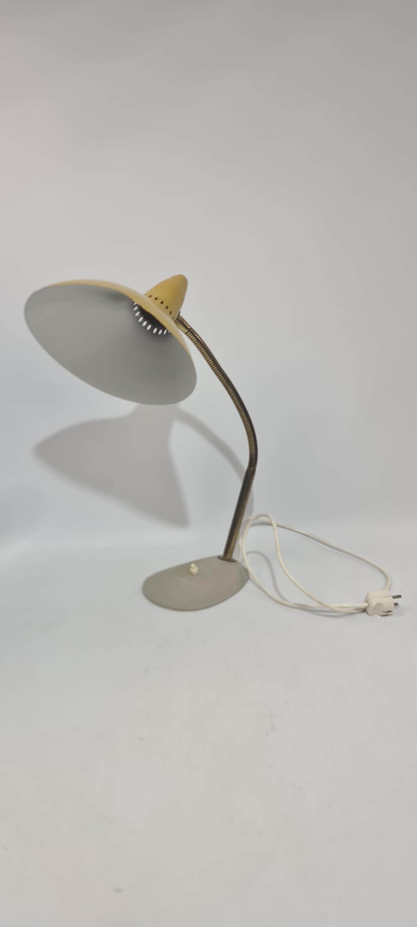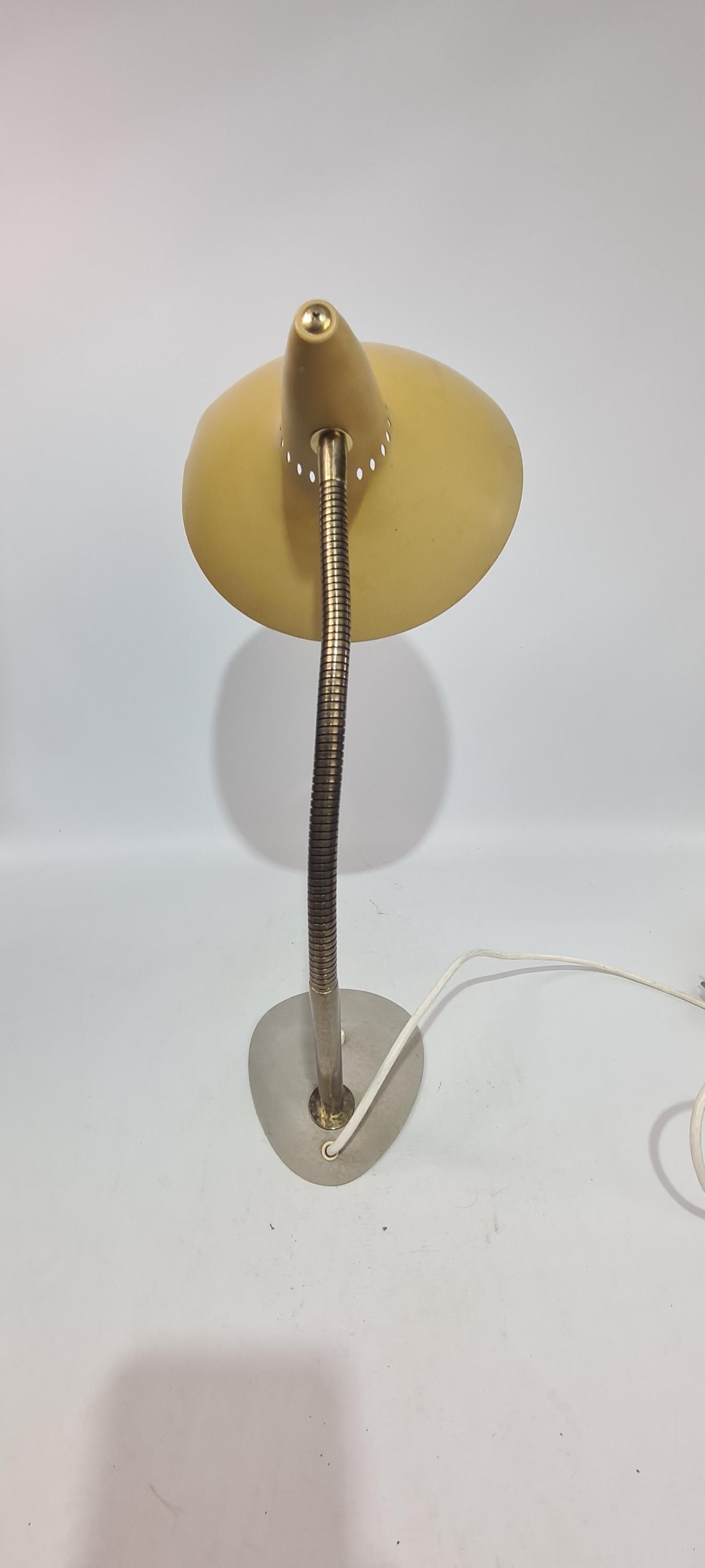 Vintage-industrial ,goose necked-desk lamp ,Bauhaus style even. Neck is good holds the weight of the shade well.Has a single E25/26 fitting atm a two pinned plug which can be changed to suit.