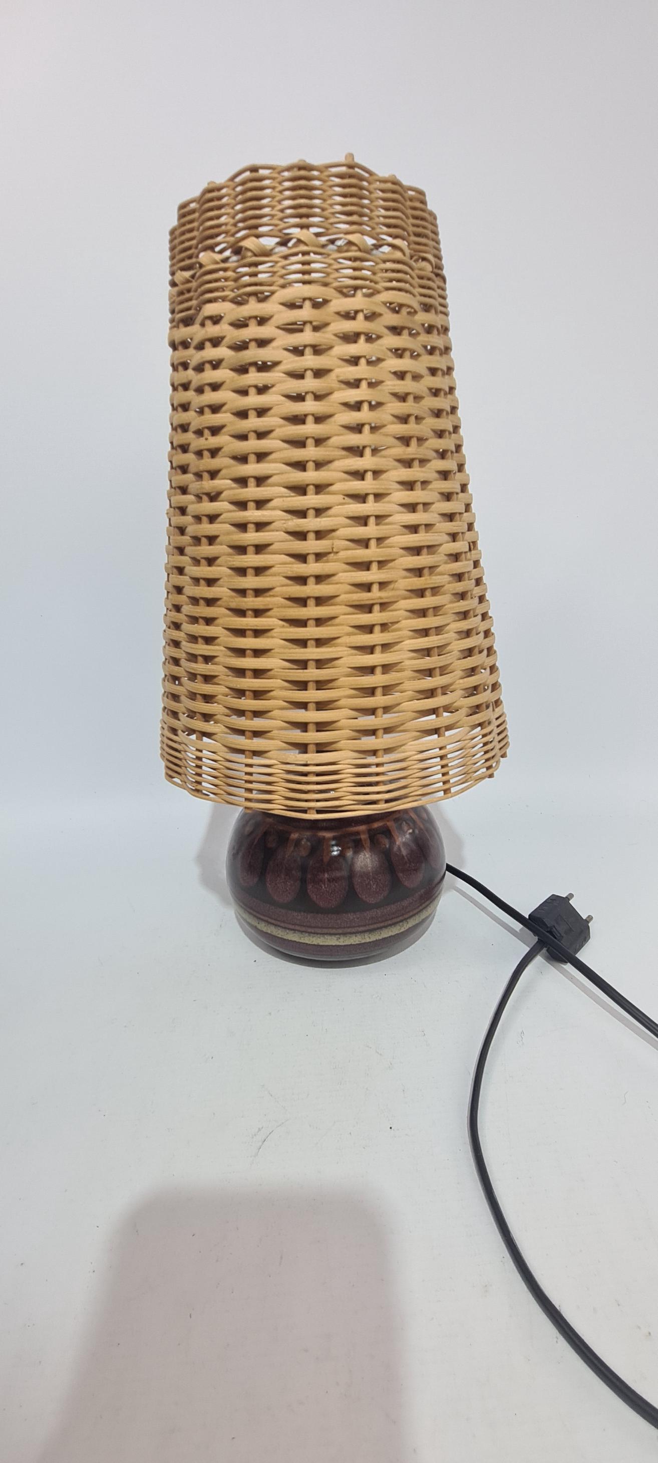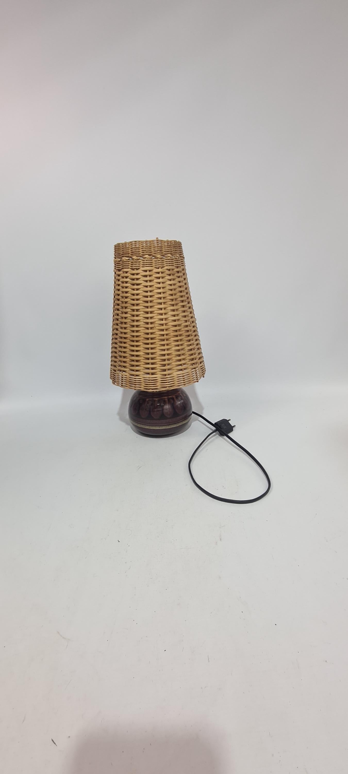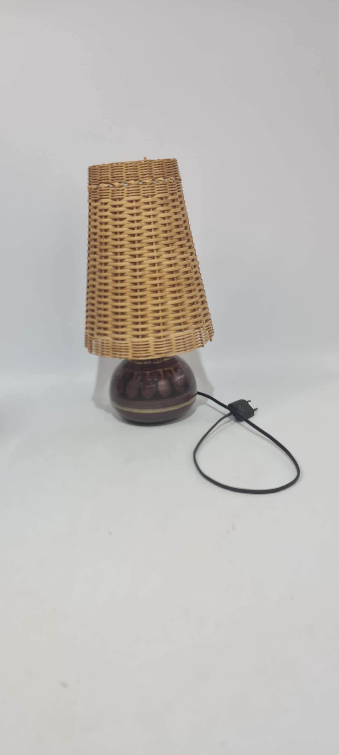 Vintage German side light. From the decor, it appears to be made by KMK Germany.Shade does it for me Wicker! Condition is good, used but not abused.