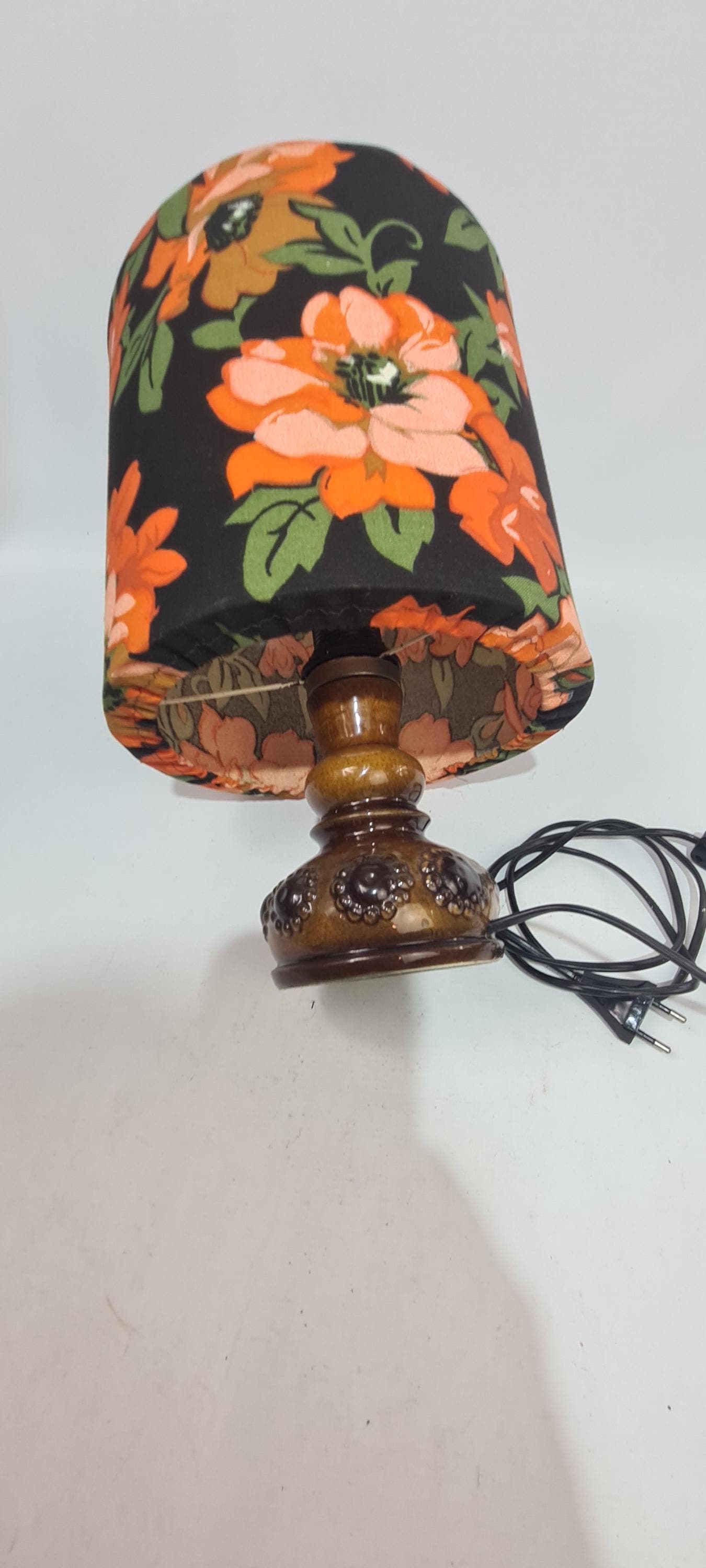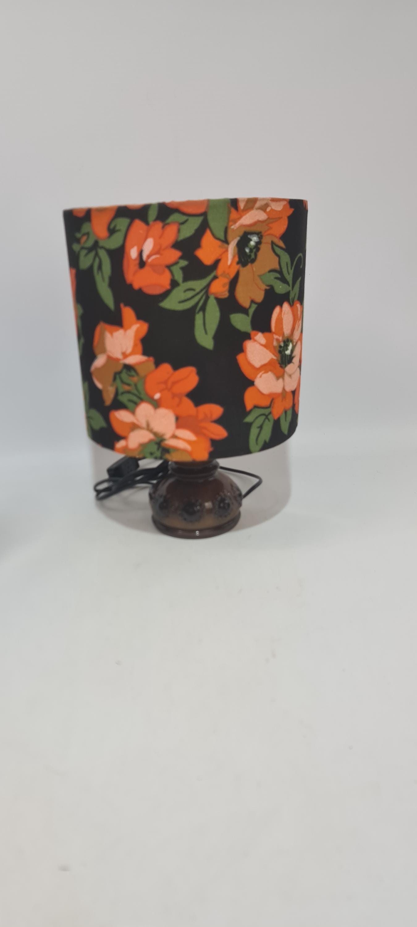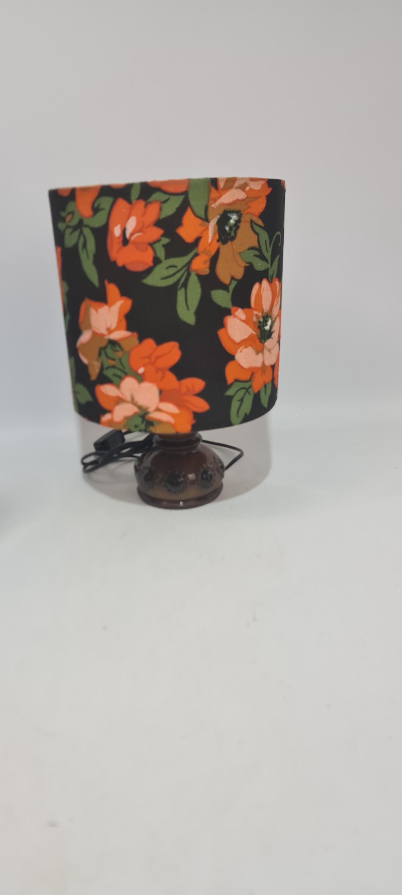 Vintage bedside lamp with a floral shade. Personally i think its German made probably in the 70s. Condition is good, used but not abused, it has a single e27/26 fitting and a two pinned euro plug that can be changed no problem. Measurements are ca 39 cm high with shade 22 cm without x 26 cm wide.