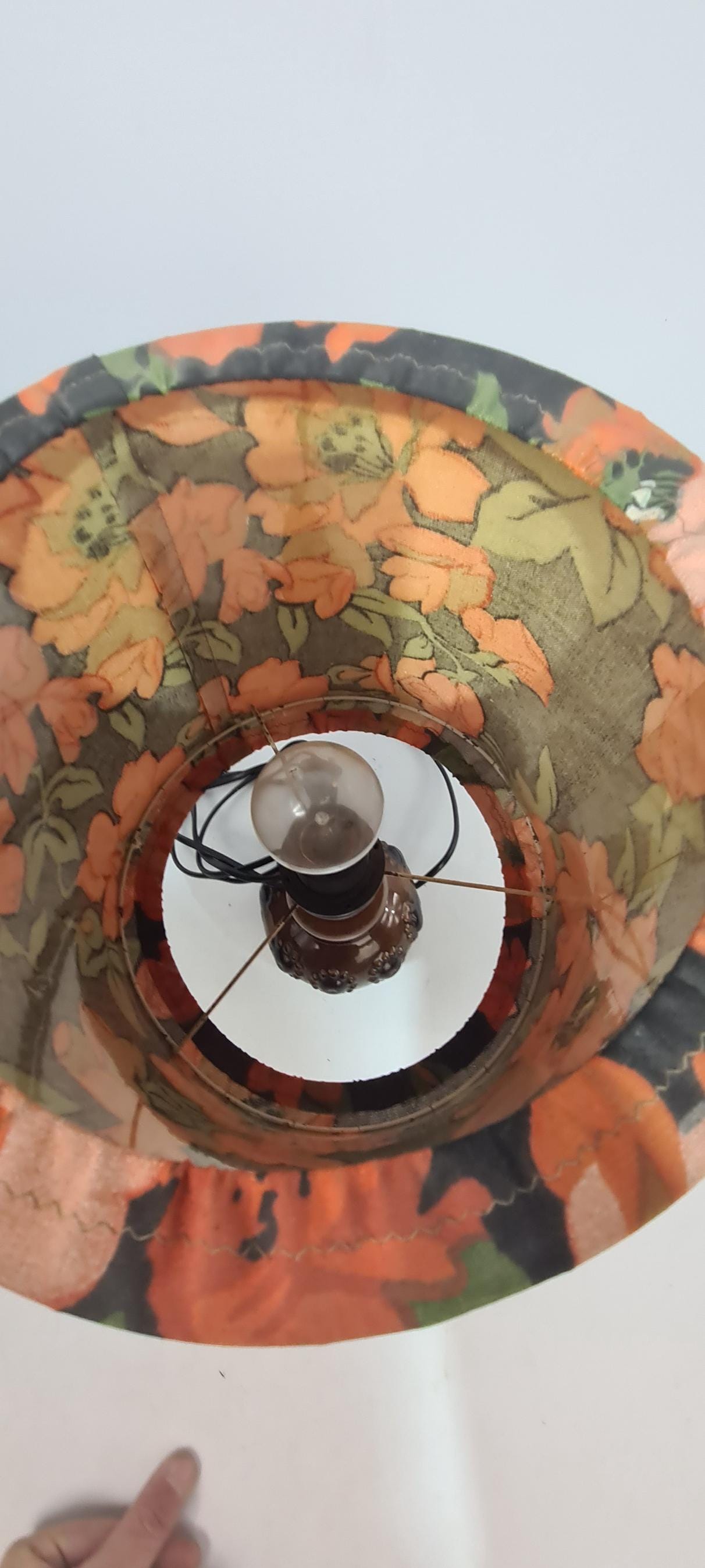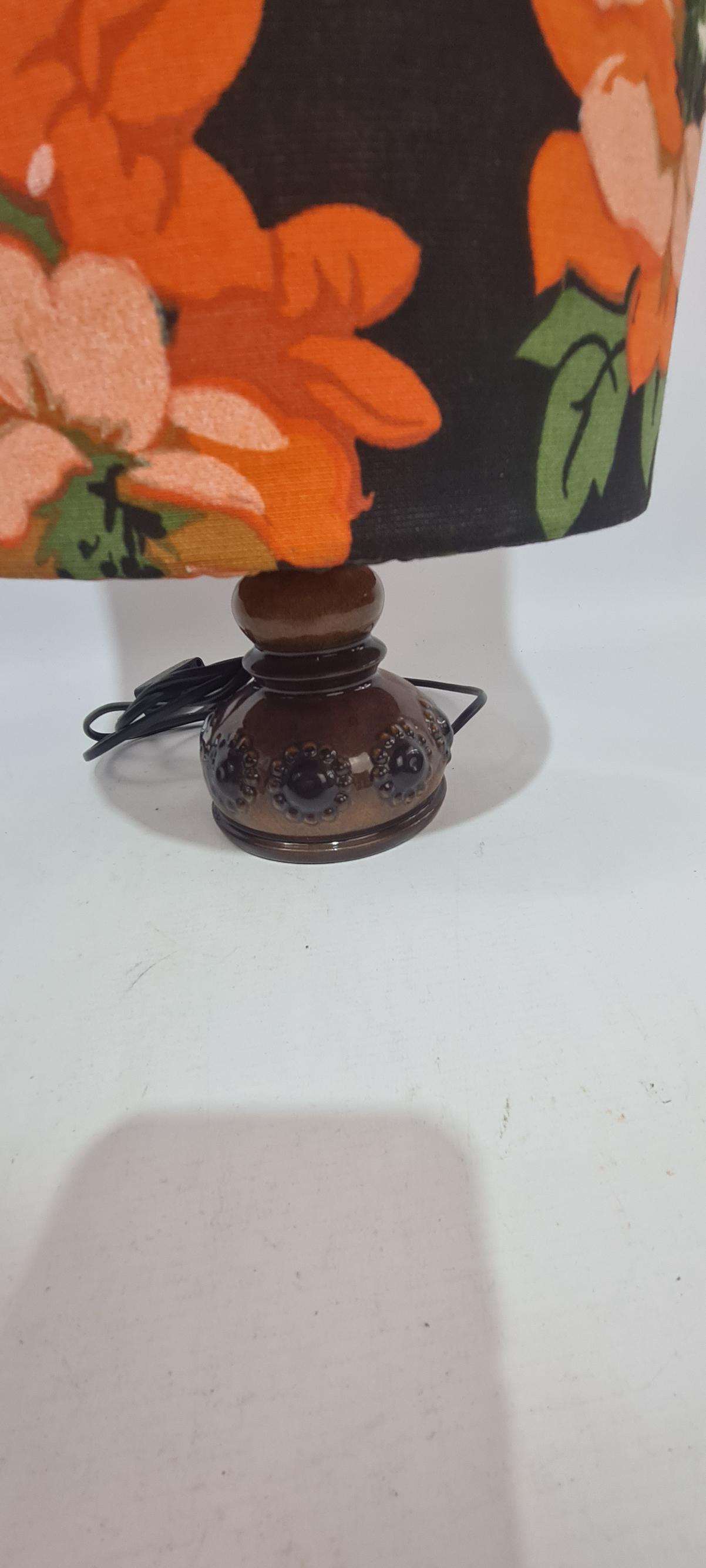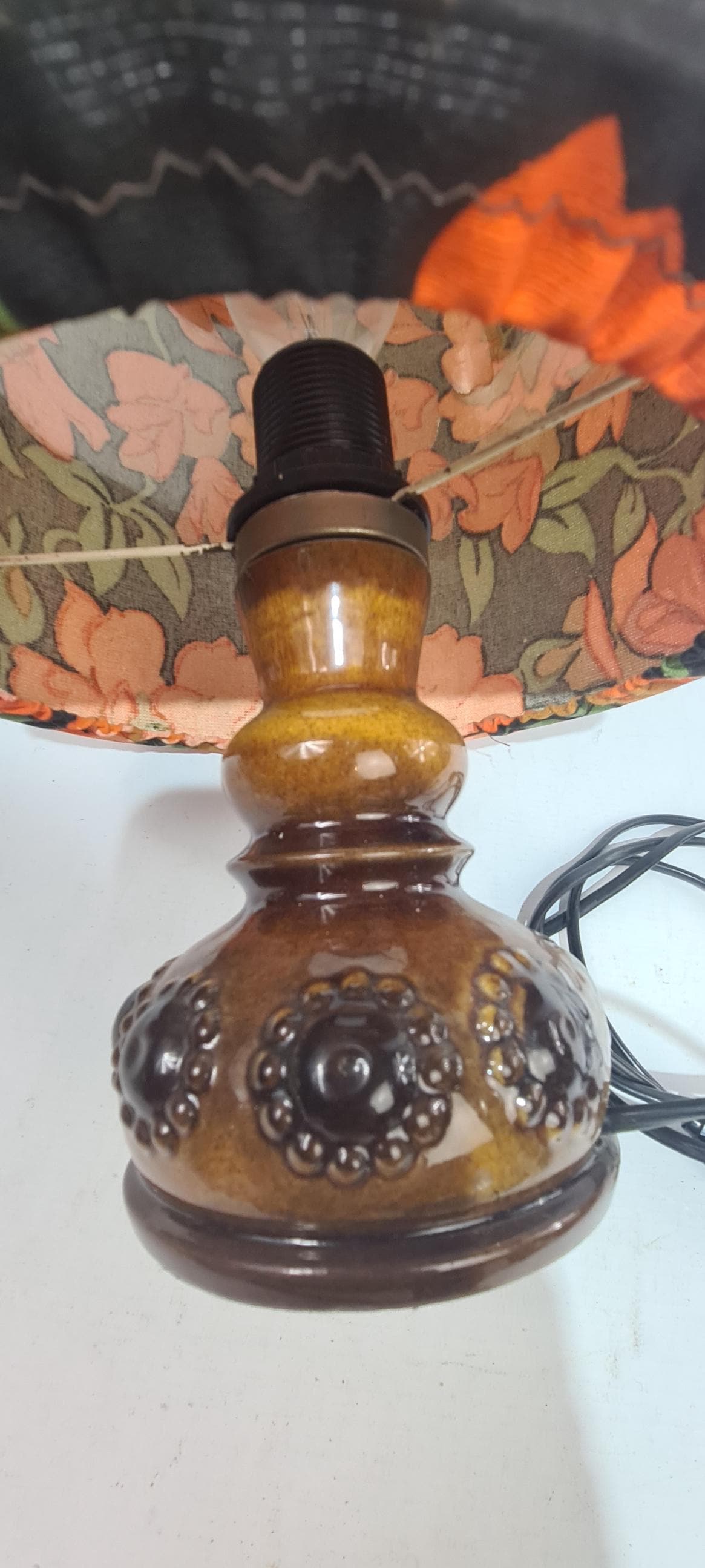 Vintage bedside lamp with a floral shade. Personally i think its German made probably in the 70s. Condition is good, used but not abused, it has a single e27/26 fitting and a two pinned euro plug that can be changed no problem. Measurements are ca 39 cm high with shade 22 cm without x 26 cm wide.