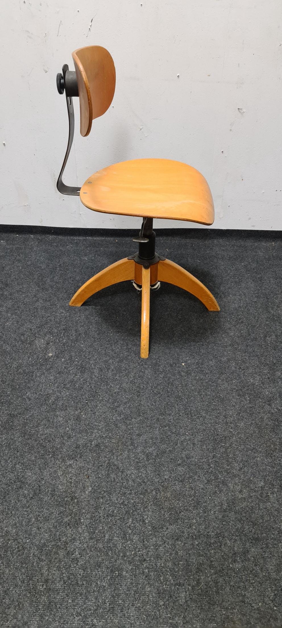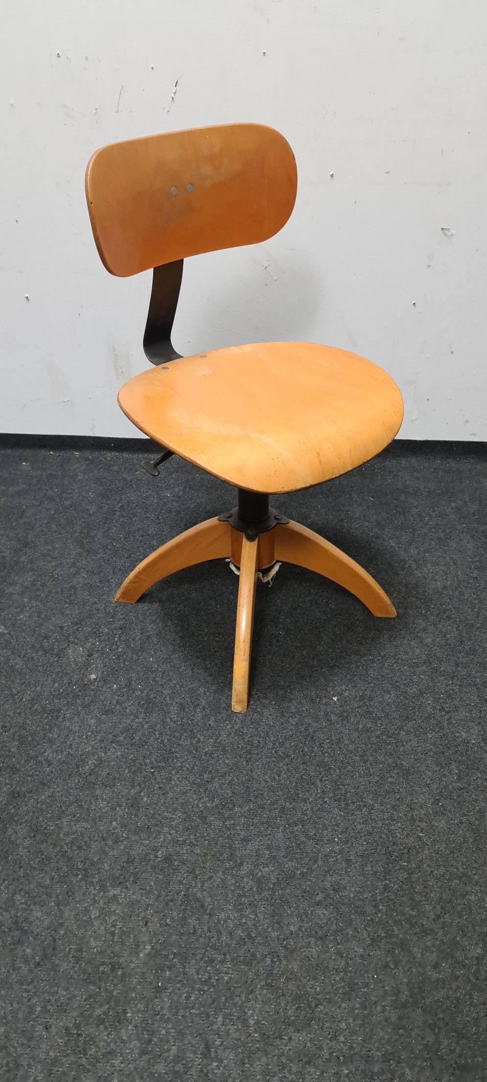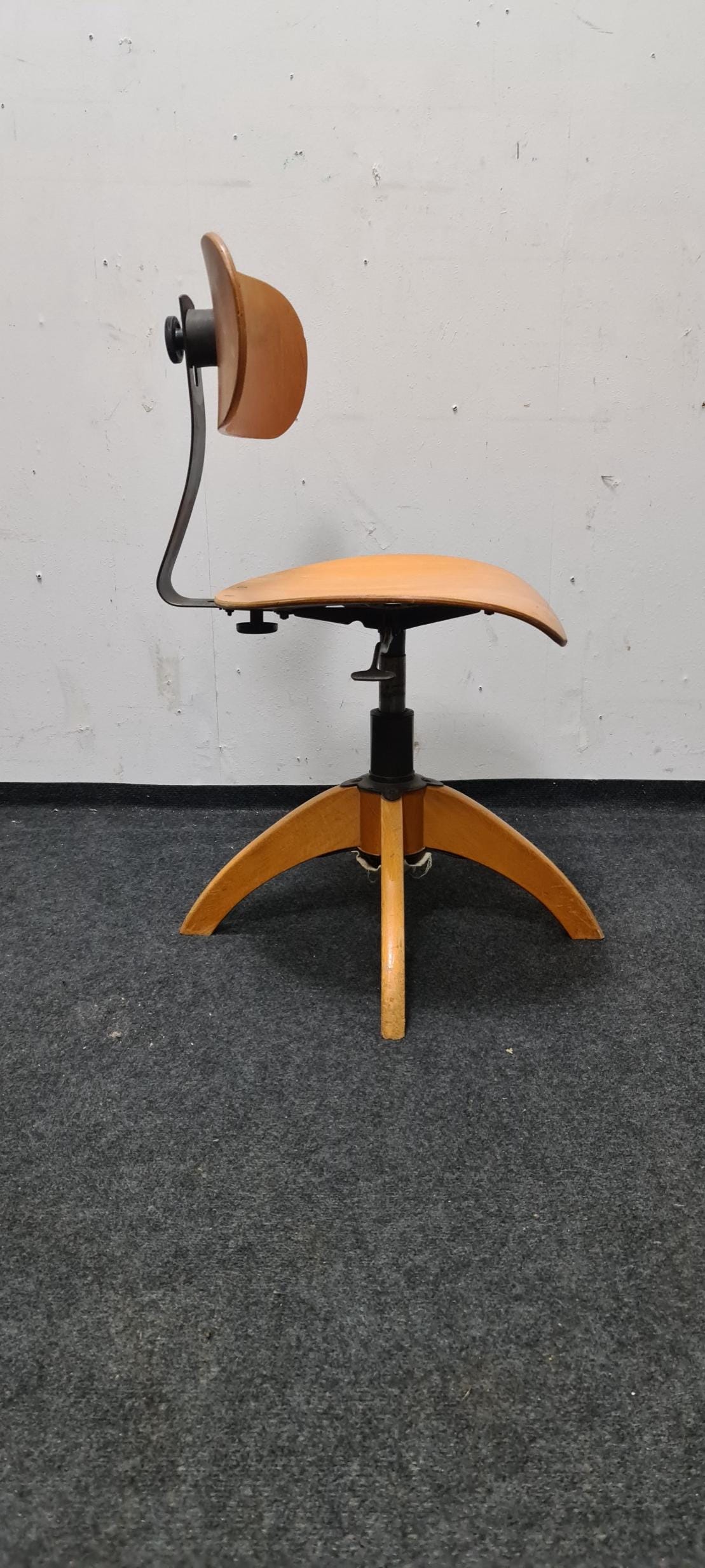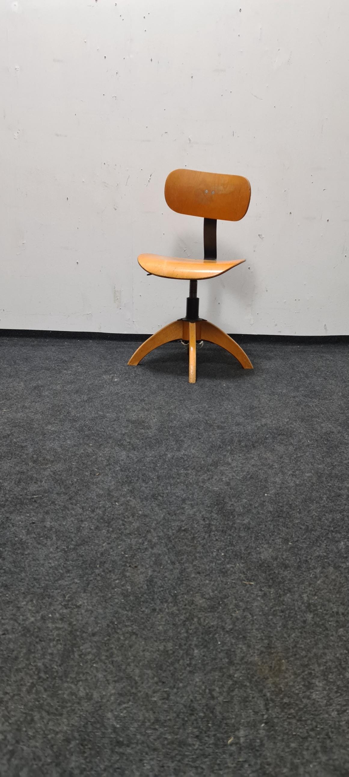 Vintage, wooden, industrial, Bauhaus adjustable office chair by Bohler. The seat height and backrest are adjustable, with a seat height of 46 cm to 60 cm.