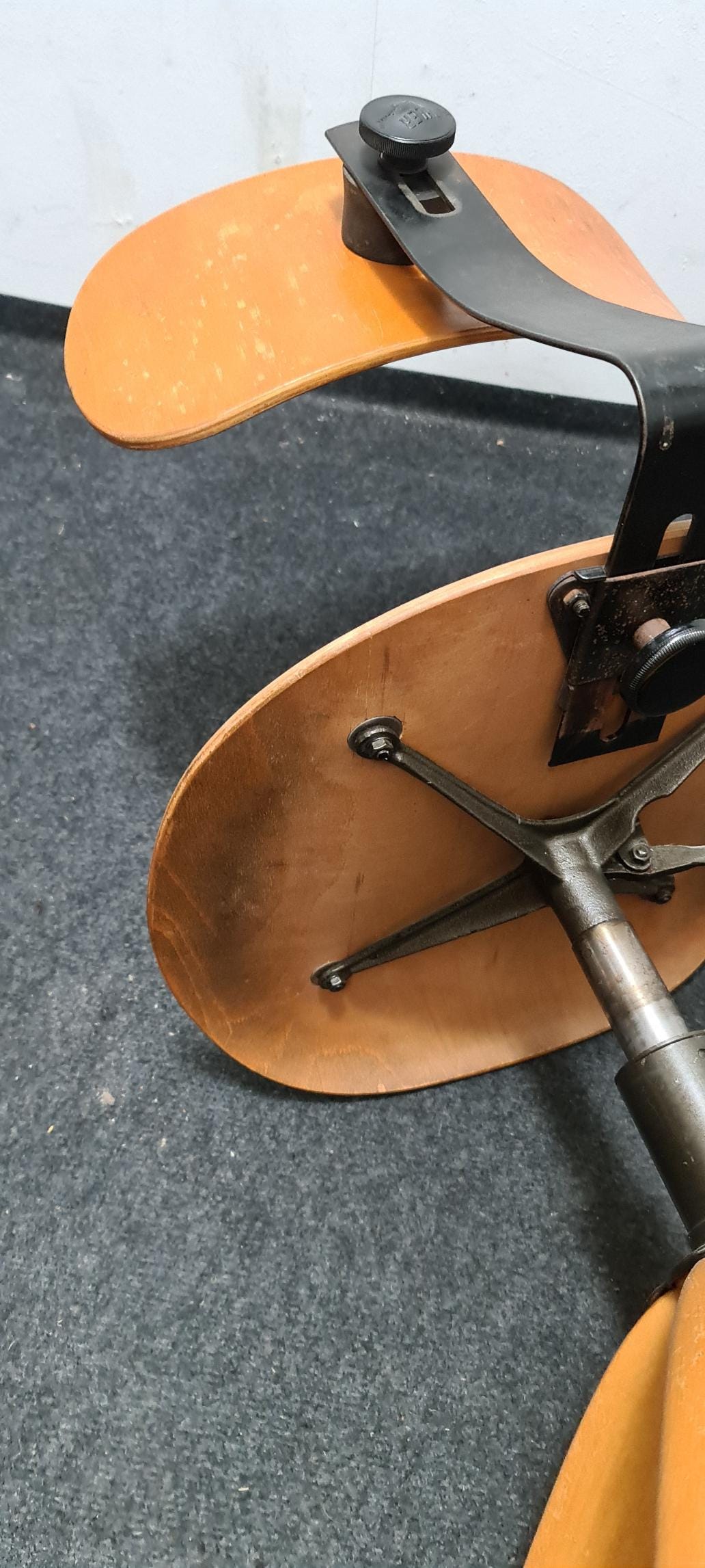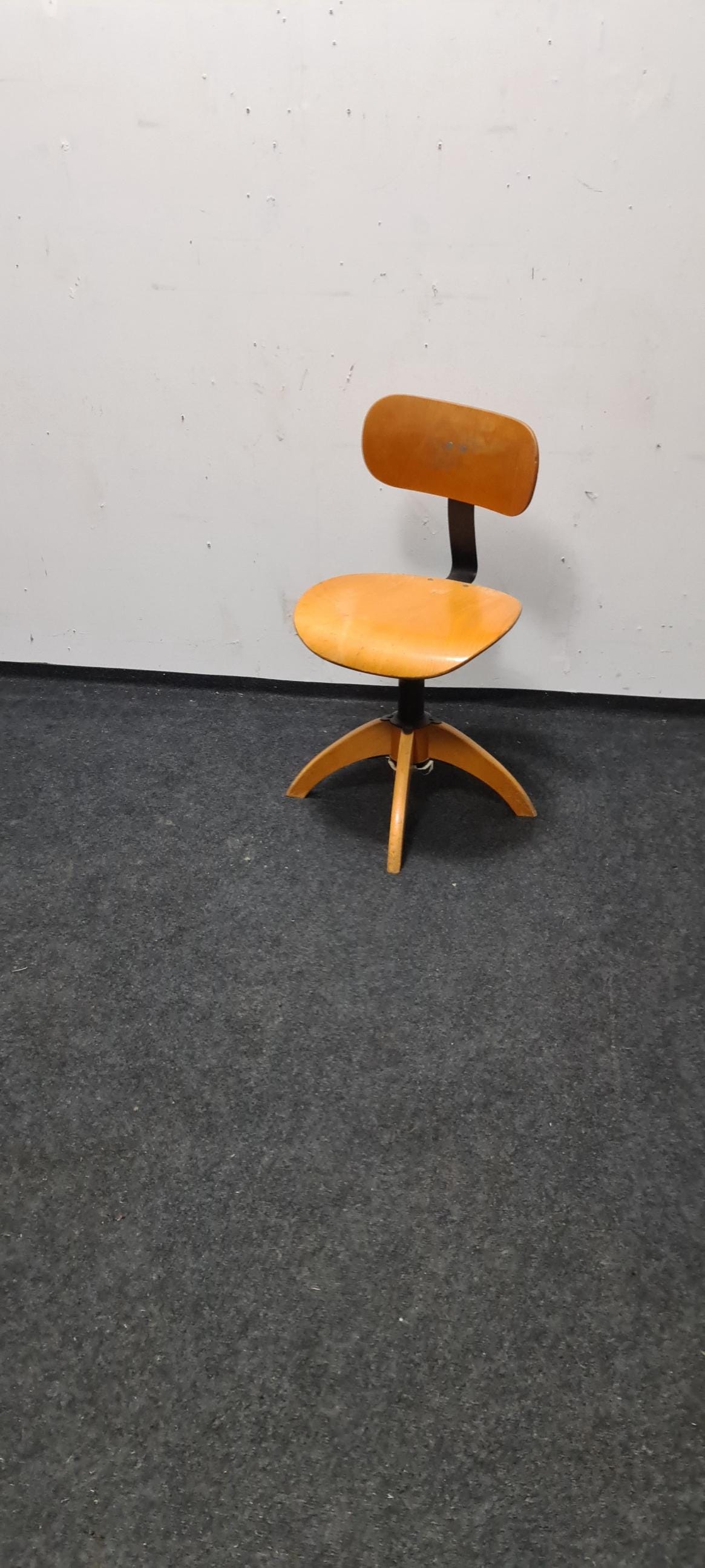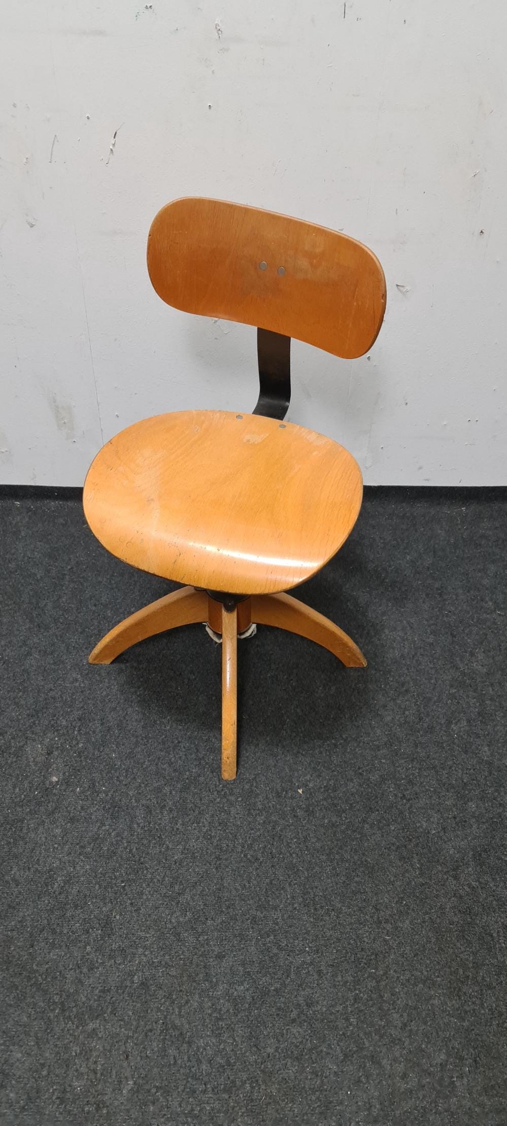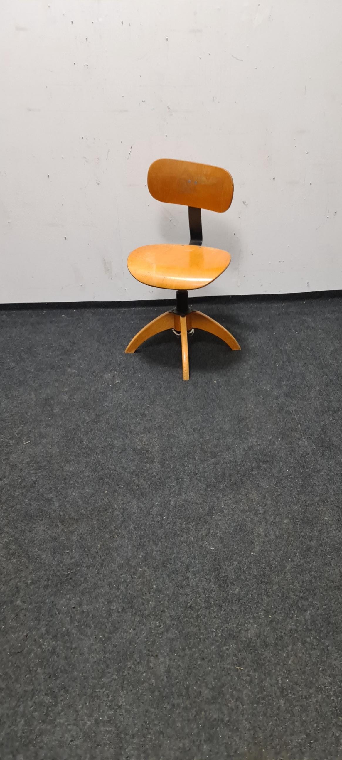 Vintage, wooden, industrial, Bauhaus adjustable office chair by Bohler. The seat height and backrest are adjustable, with a seat height of 46 cm to 60 cm.
