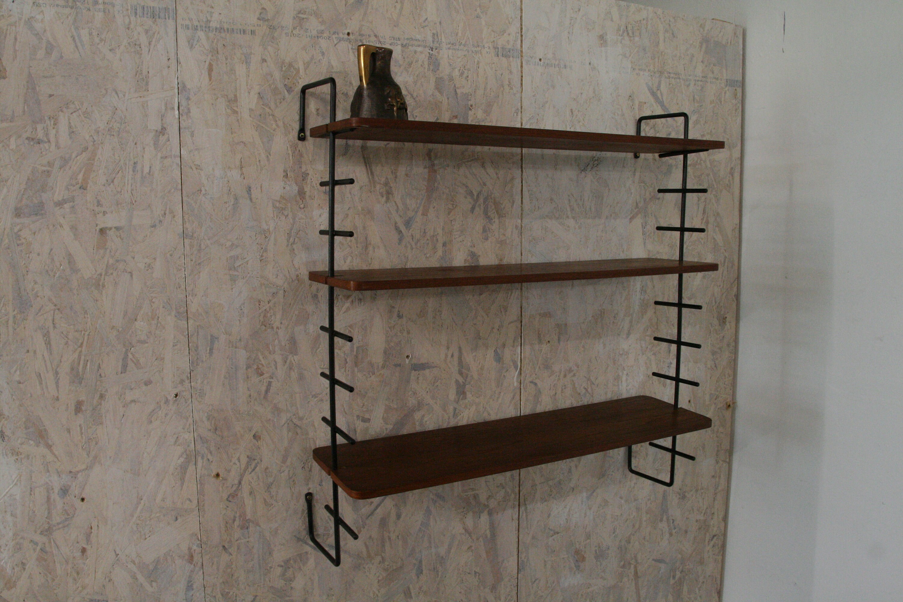 I love me shelving and wall systems but this style or shape is a first for me !!! Planks are teak verneer with metal ladders ...