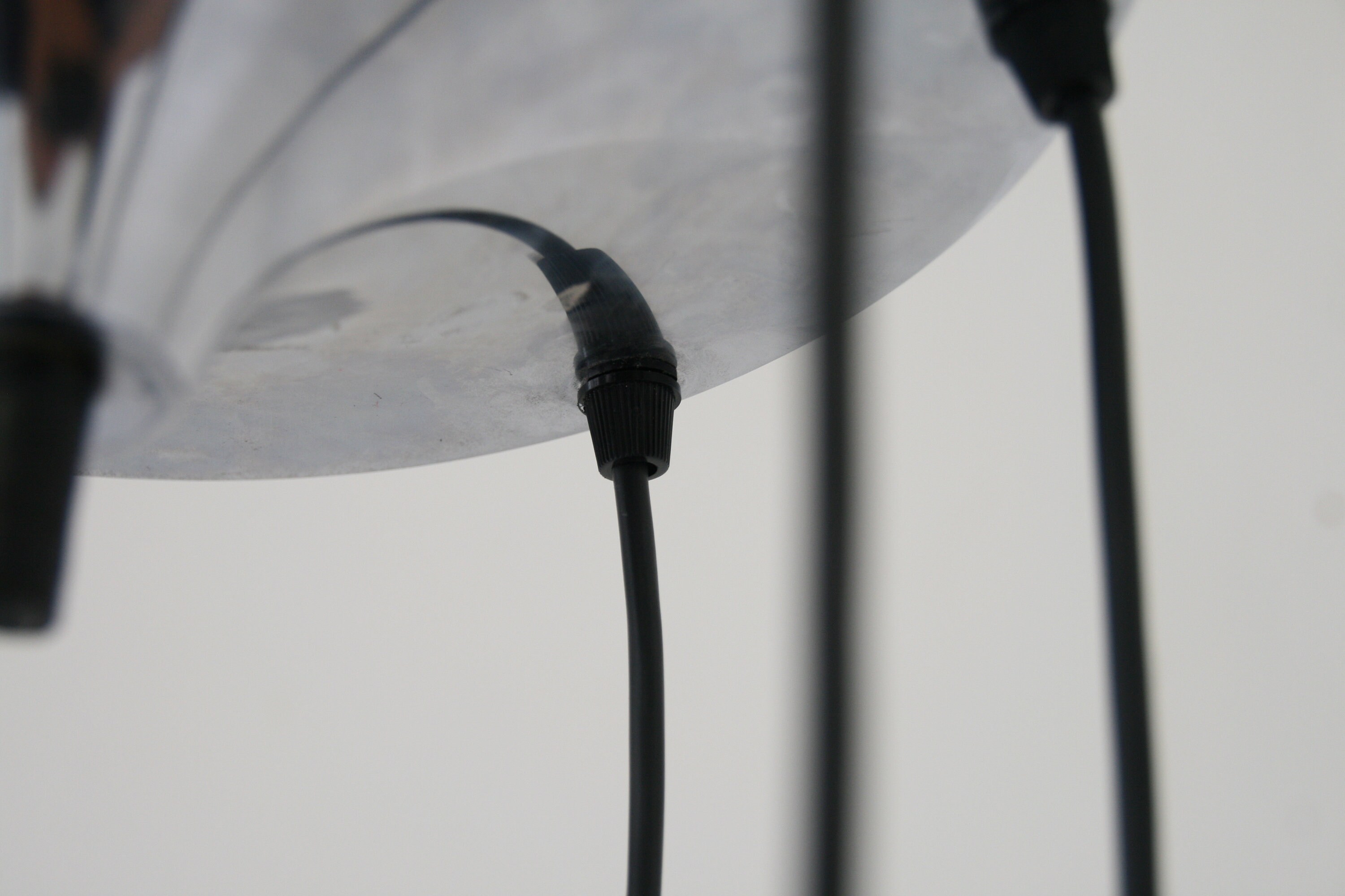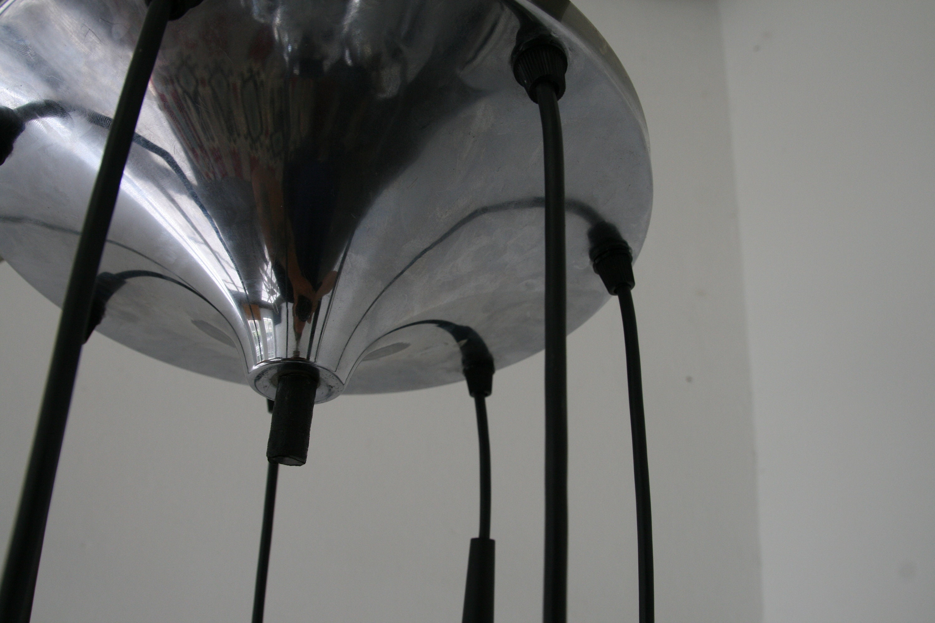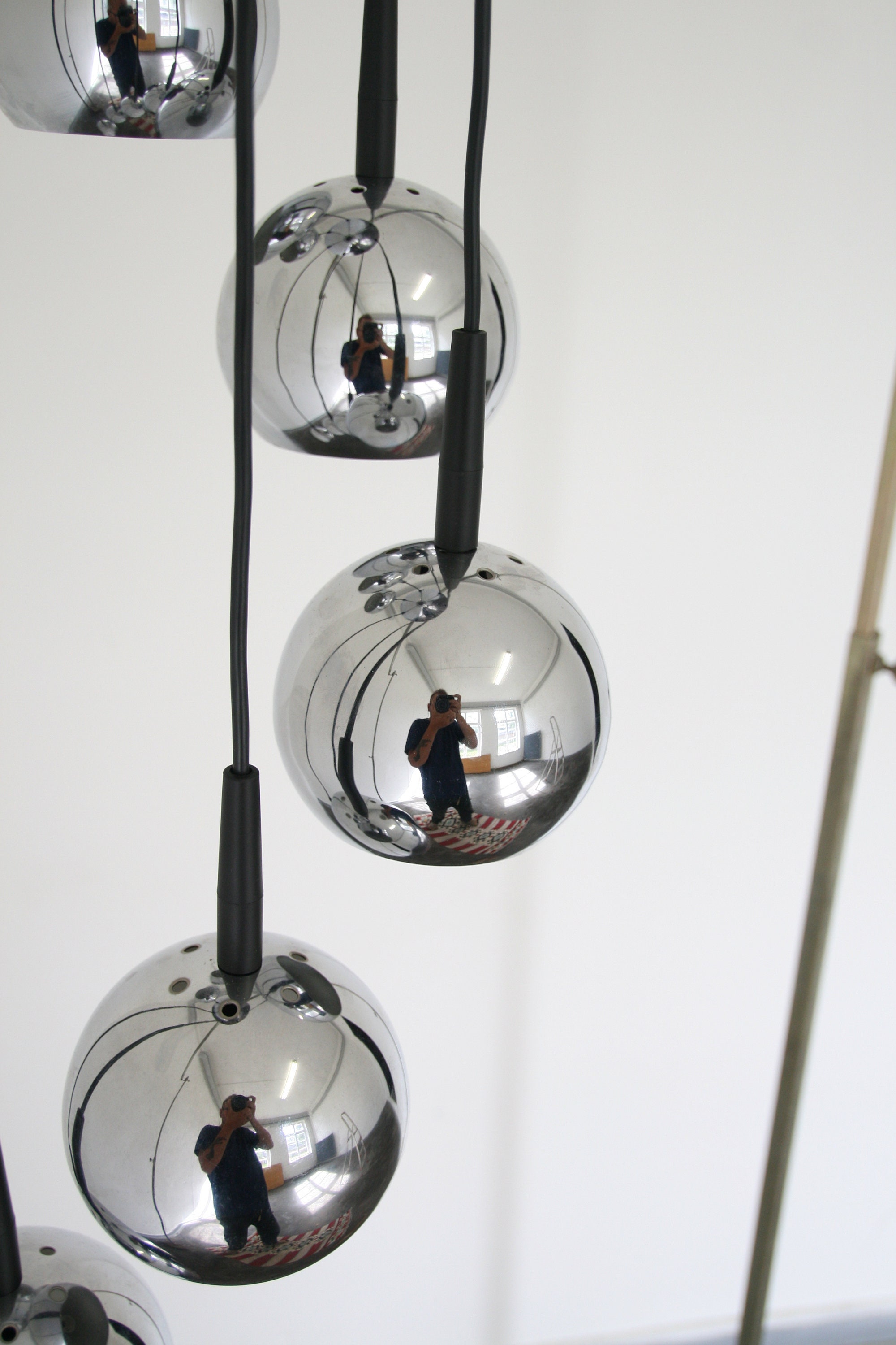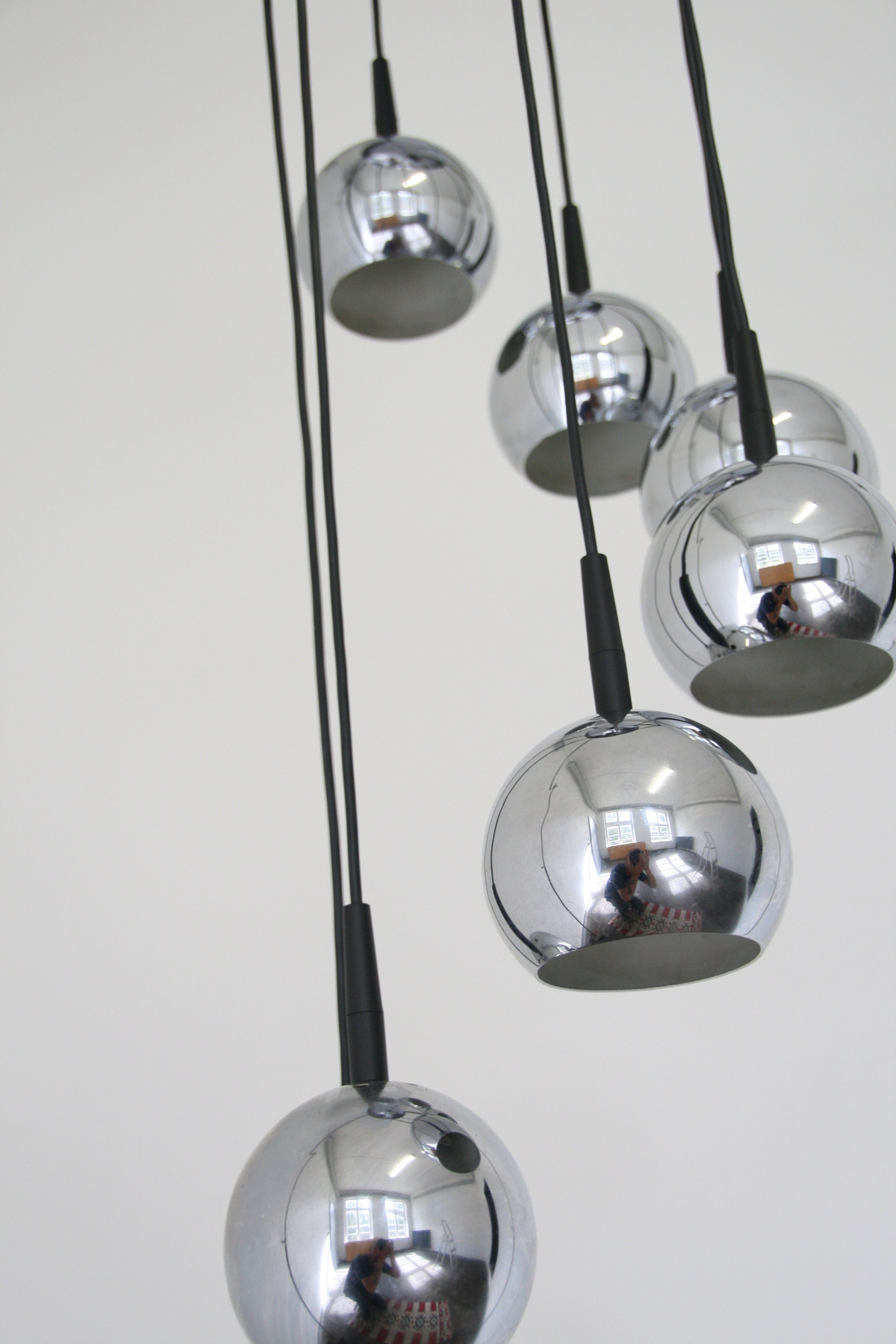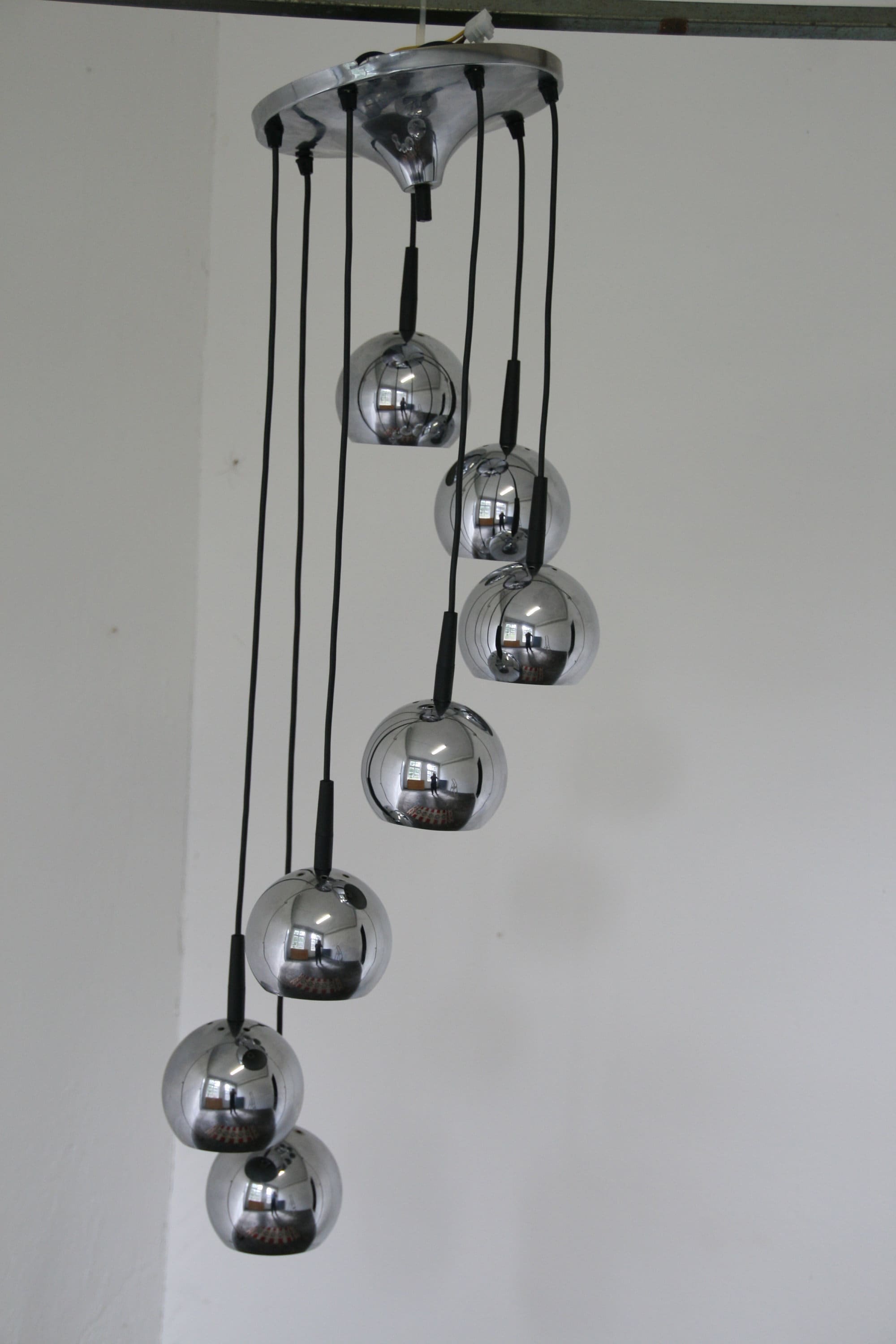 If you got the space man this one shines ! ha ha literally and figuratively .. 7 ball longest hangs at around 96 cm all have an E14 fitting rated to yeah ? , TBH i dont know but cant imagine it being above 40 watts .
