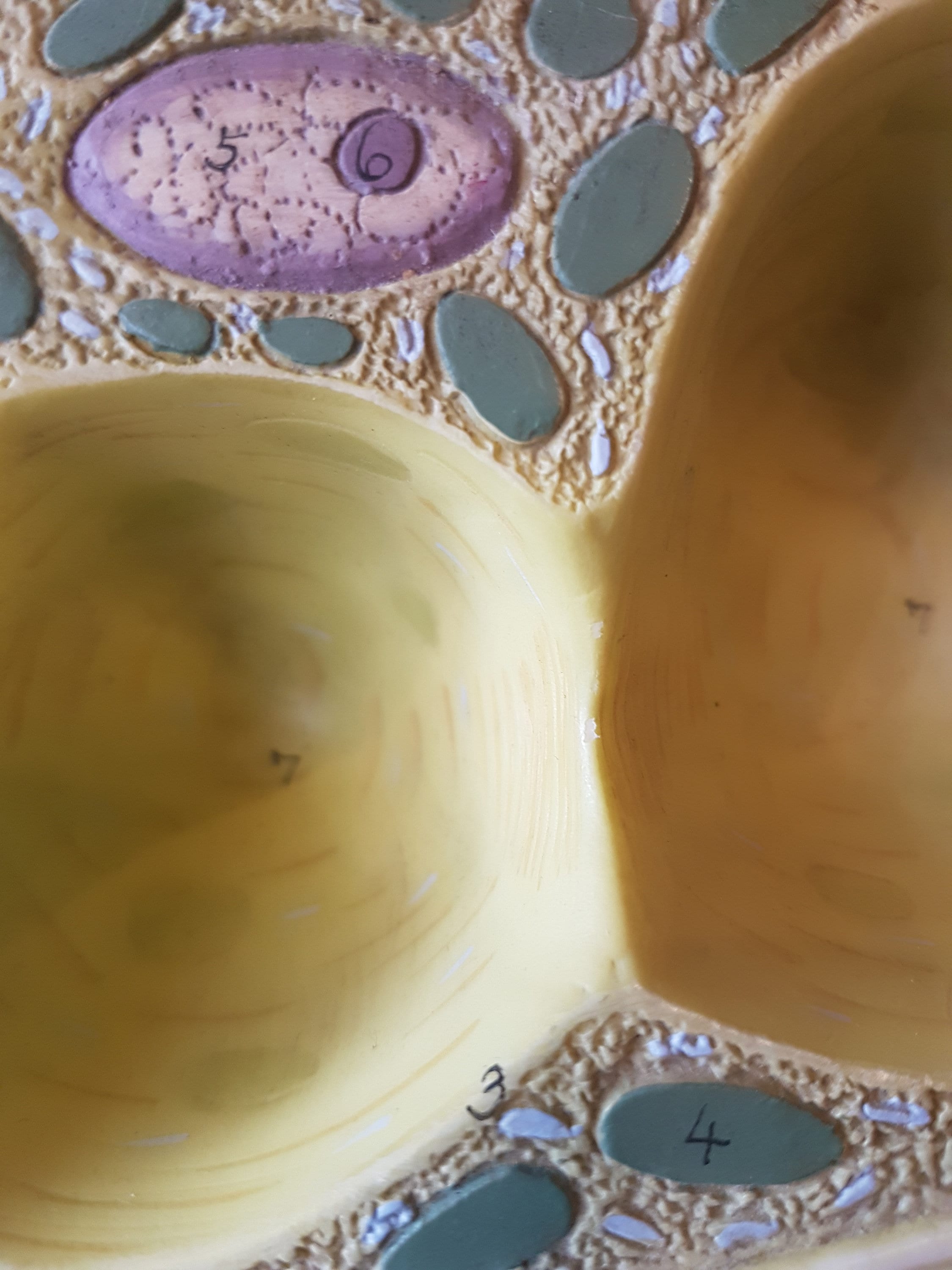 Hand paint model of a plant cell enlarged 3000 times by Somso W Germany .