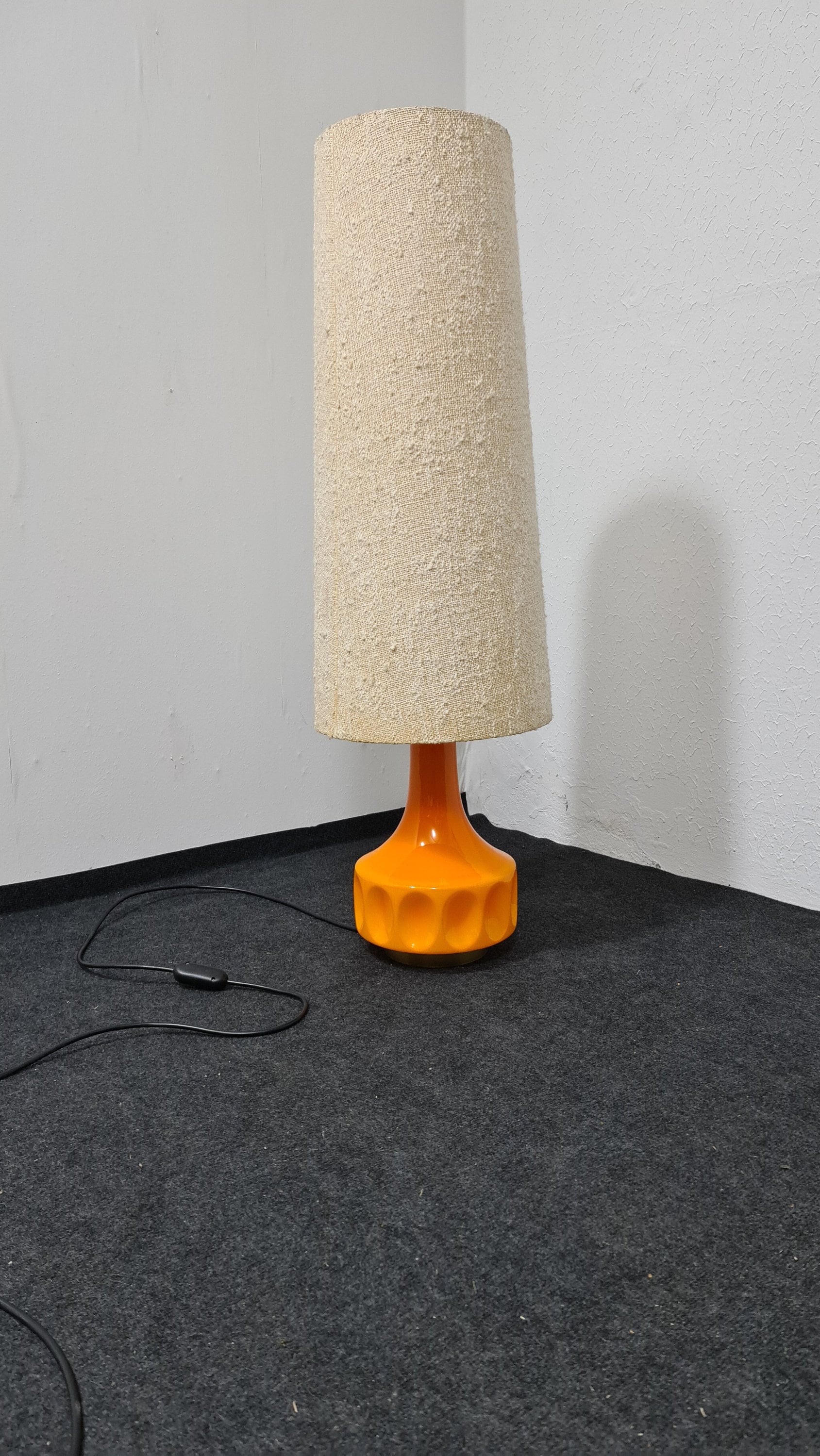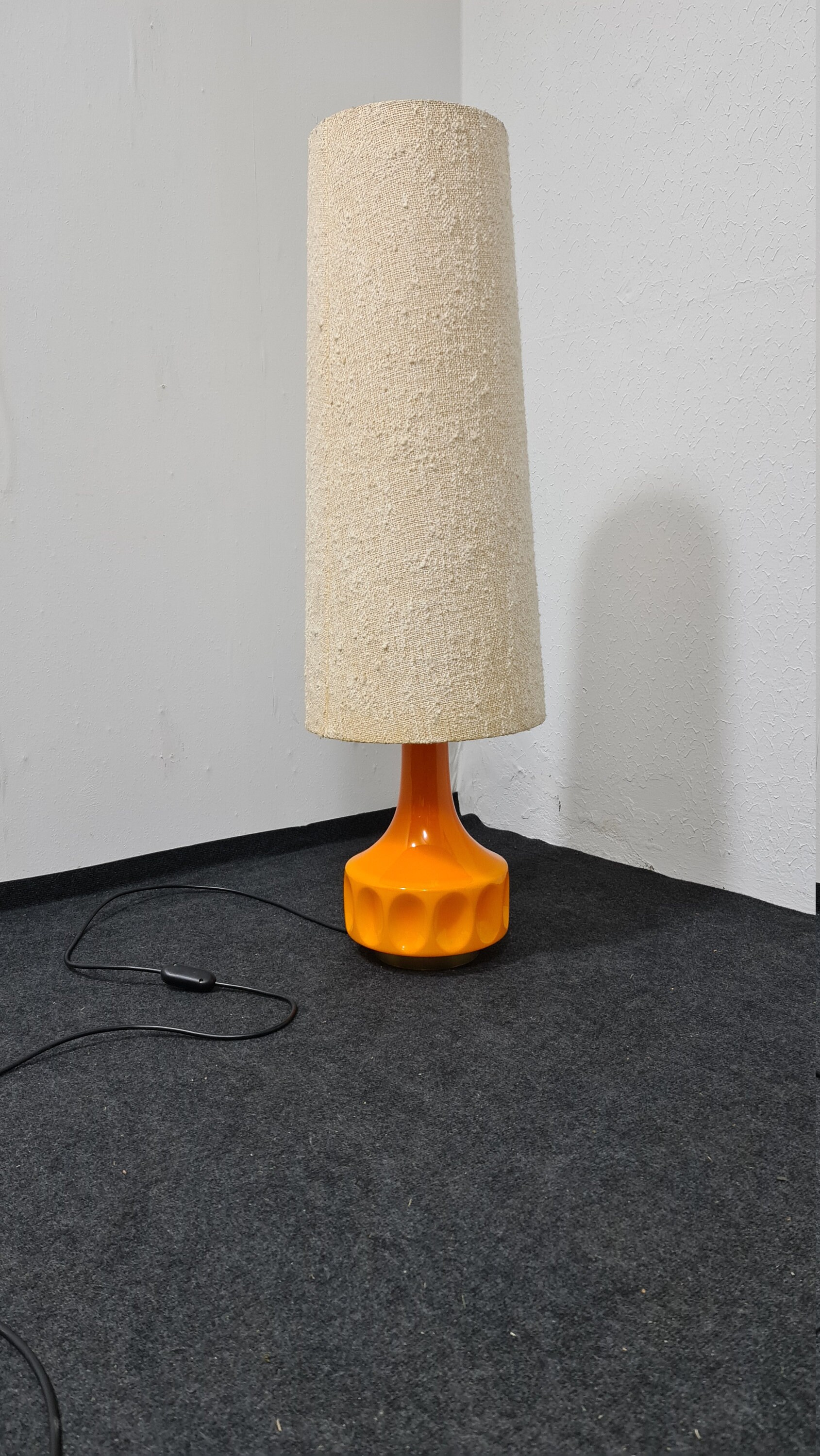 Vintage 70s glass floor lamp in bright orange . On the outside the caps alright the inside some places a bit thin ! Light also light ups at both ends !